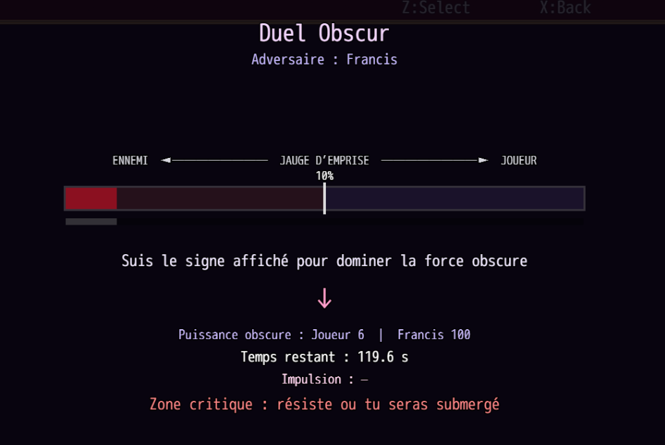 C’est un duel obscur en temps réel, pas un combat classique RPG Maker.